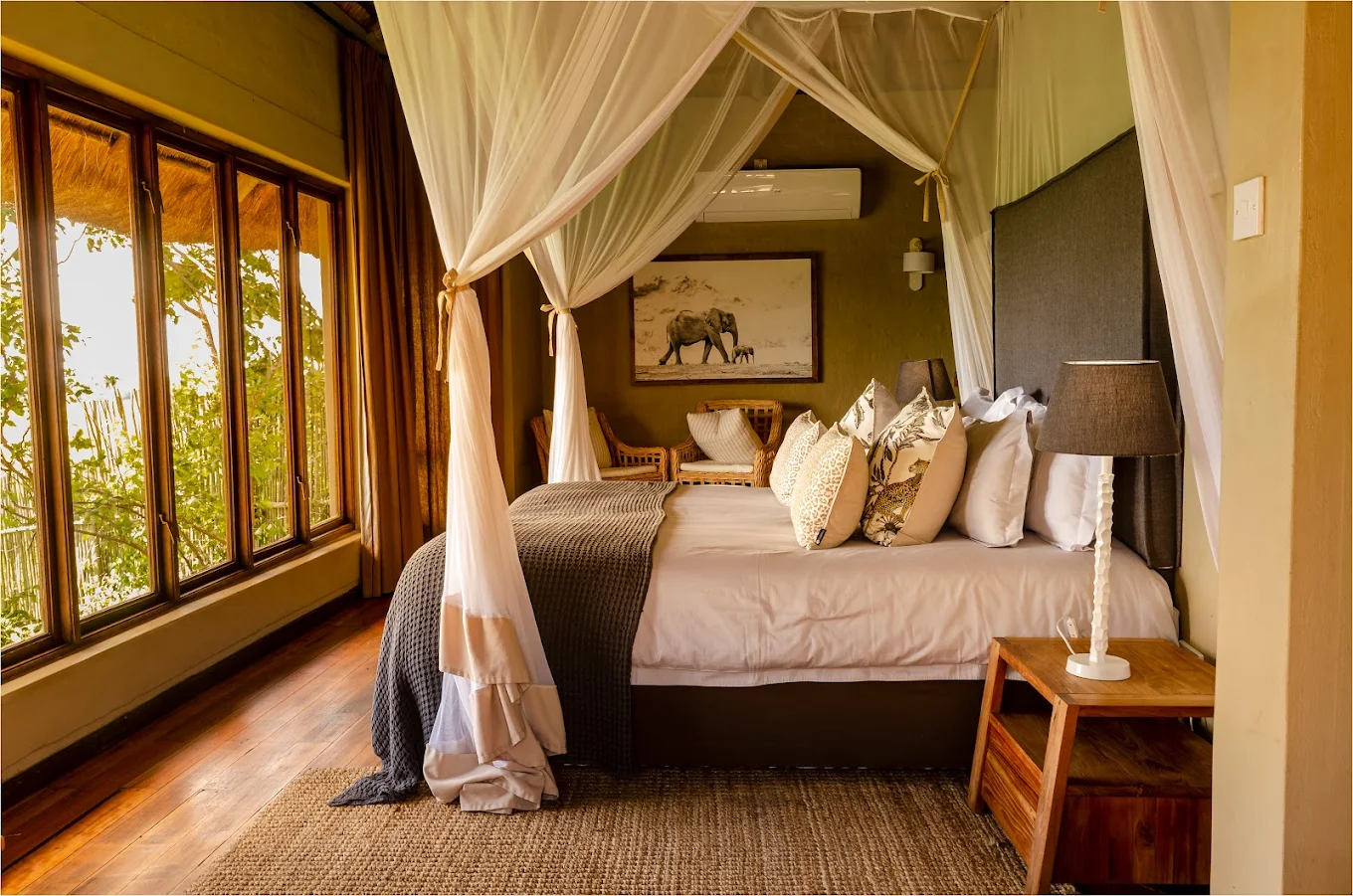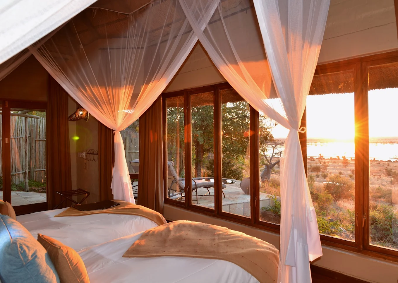 This luxury lodge in Hwange features beautifully appointed chalets and suites designed to blend seamlessly with the surrounding bush. Each unit offers private decks with stunning views of the park, en-suite bathrooms, and modern amenities to ensure comfort while staying immersed in nature. Ngoma Safari Lodge is celebrated for its warm hospitality, relaxed atmosphere, and intimate safari experiences, making it one of the best safari camps in Hwange National Park.