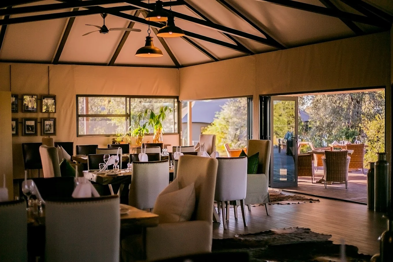 Pause for sundowners in a scenic location before returning to camp for dinner.